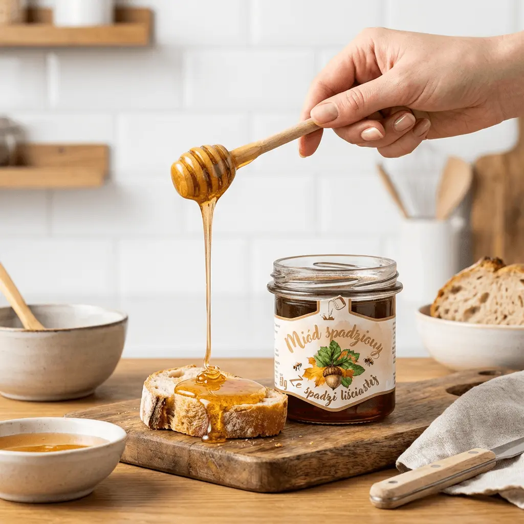 - Smak: Głęboki, acz łagodniejszy niż spadź iglasta, z nutą leśno-ziemistą.